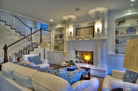Built-ins can make such a difference in a room. Below I love how the sconce lighting was thought of ahead of time and built into this special wall of storage.